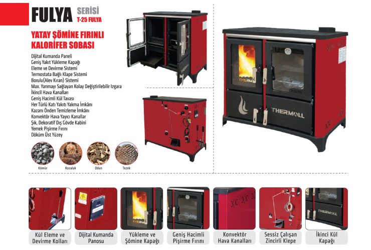 - Thermoll T-25 FULYA Yatay Şömine Fırınlı Kalorifer Sobası