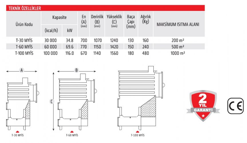 30.000 kcal/h = EN: 700 mm DERİNLİK: 1070 mm YÜKSEKLİK: 1240 mm KAPASİTE: 200 m^2
